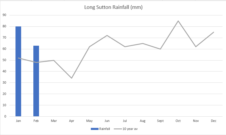 At Long Sutton we have come out of relatively cold and wet winter compared to medium term averages. In the second week of January we had a 13 year coldest day, with temperatures dipping to -8C on 8th January, having been at -4C for quite a few days before that. Winter (Dec-Feb) rainfall at 193mm (7.6”) has only been slightly above the 10 year average of 172mm (6.8”), but with the very wet November (117mm), then it has felt wetter. Despite all this you have still been taking your lovely dogs out and bookings remain very similar to last year with 94% winter occupancy. Thank you all for your custom and loyalty; we will continue to work hard to provide a clean, fun and safe place for you and your dogs to enjoy.
