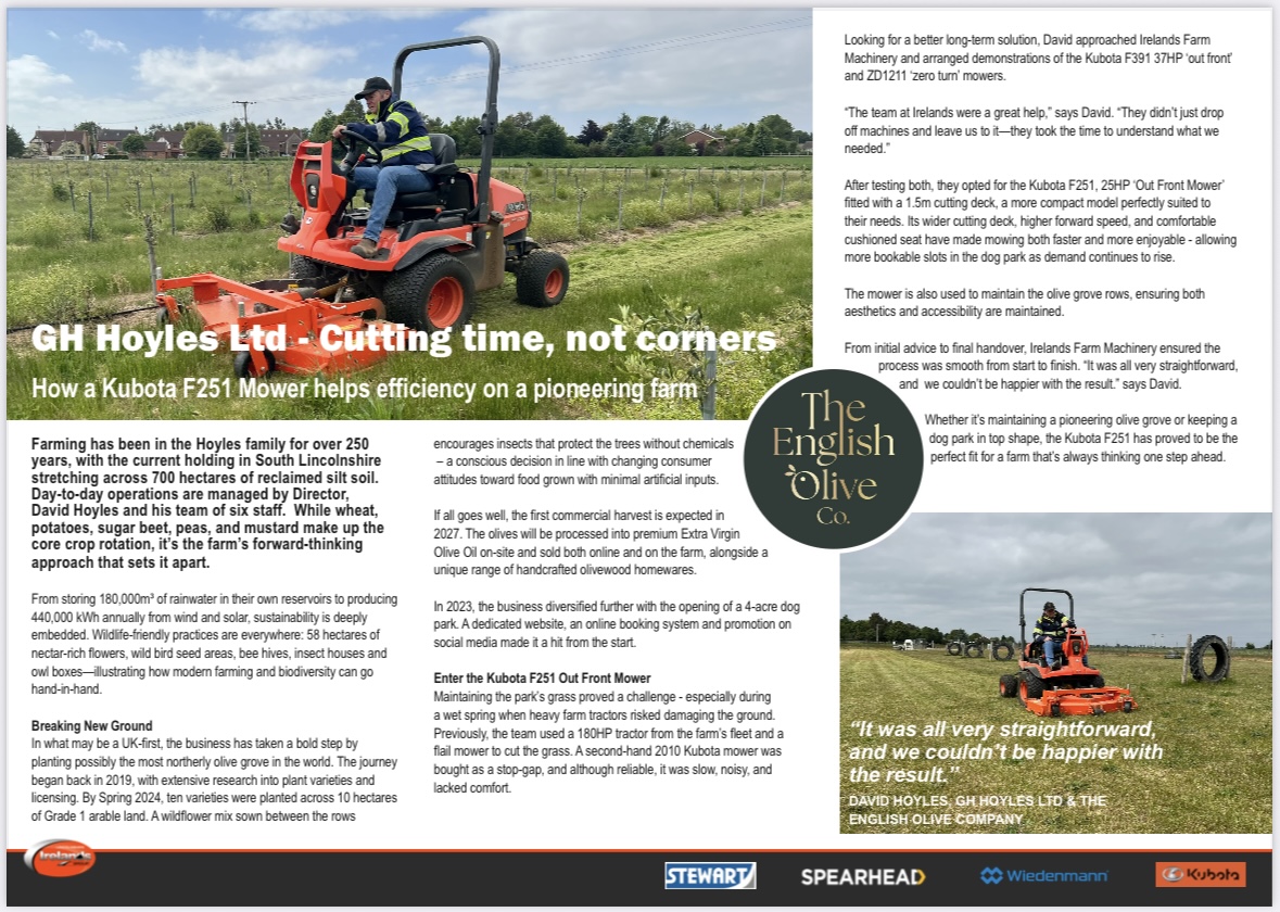 In July, our mighty mowing machine, the Kubota, had a brush with fame having been featured in Ireland Farm Machinery magazine! A lovely article ‘Cutting time not corners’ was written by Phae from Irelands and we shared it on our socials at the time. The dry weather has meant that the grass is not growing as much as usual, but the Kubota mower makes the job speedy and enjoyable!